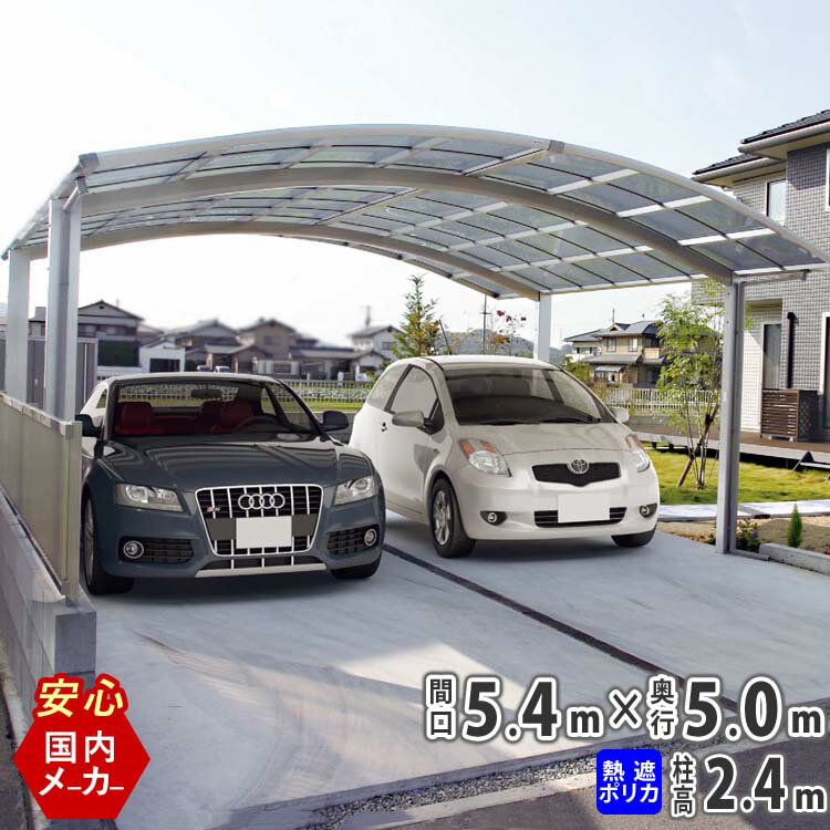 カーポート 2台用 【間口5m40cm×奥行き5m】 標準柱 国内メーカー商品 シンプルカーポート 駐車場 屋根 カースペース 熱線吸収ポリカ屋根クリアマット仕様 送料無料
